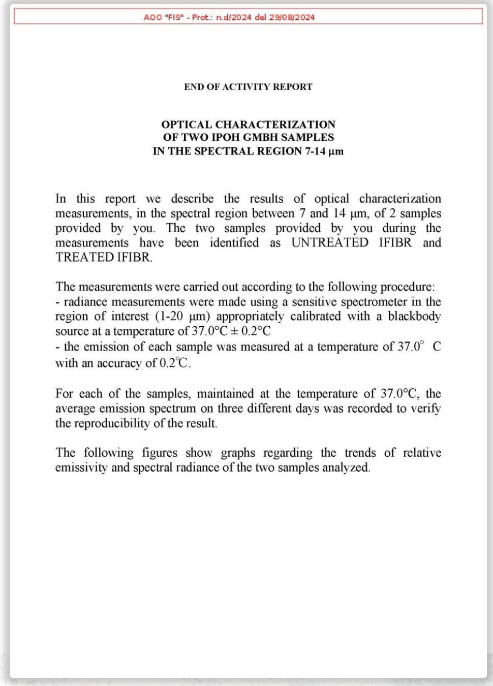 Jeder „warme“ Körper emittiert Infrarotstrahlung, und das Messen dieser Emission ist eine der effektivsten Methoden zur Materialuntersuchung. In unserem Experiment wurden ifibr® und ein identisches Placebo-Produkt auf 37°C erhitzt, um Unterschiede in der Strahlung zu erfassen.